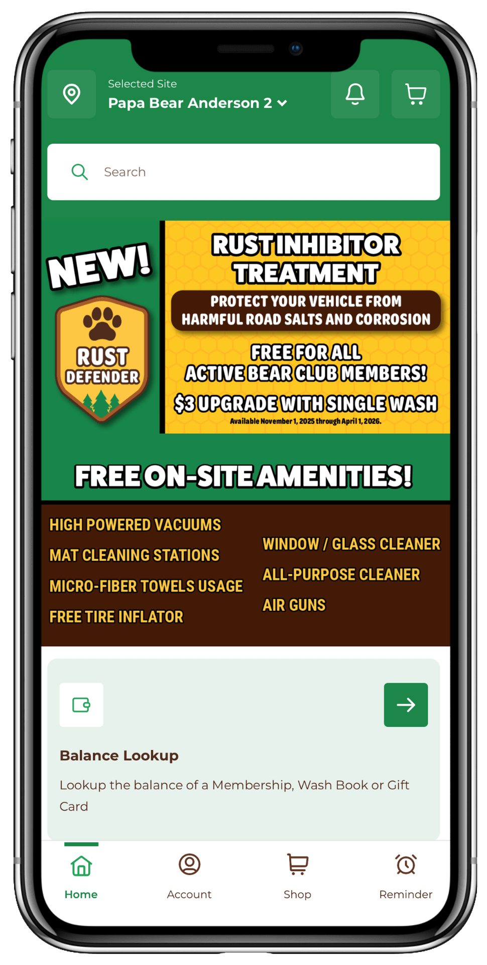 Bear Down on These Free on-site Amenities with the purchase of a wash…